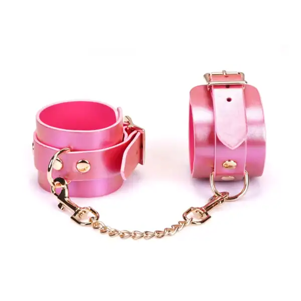 Complément indispensable à toute collection de bondage, ces menottes de cheville en cuir rose sont conçues pour conjuguer confort, style et soumission.