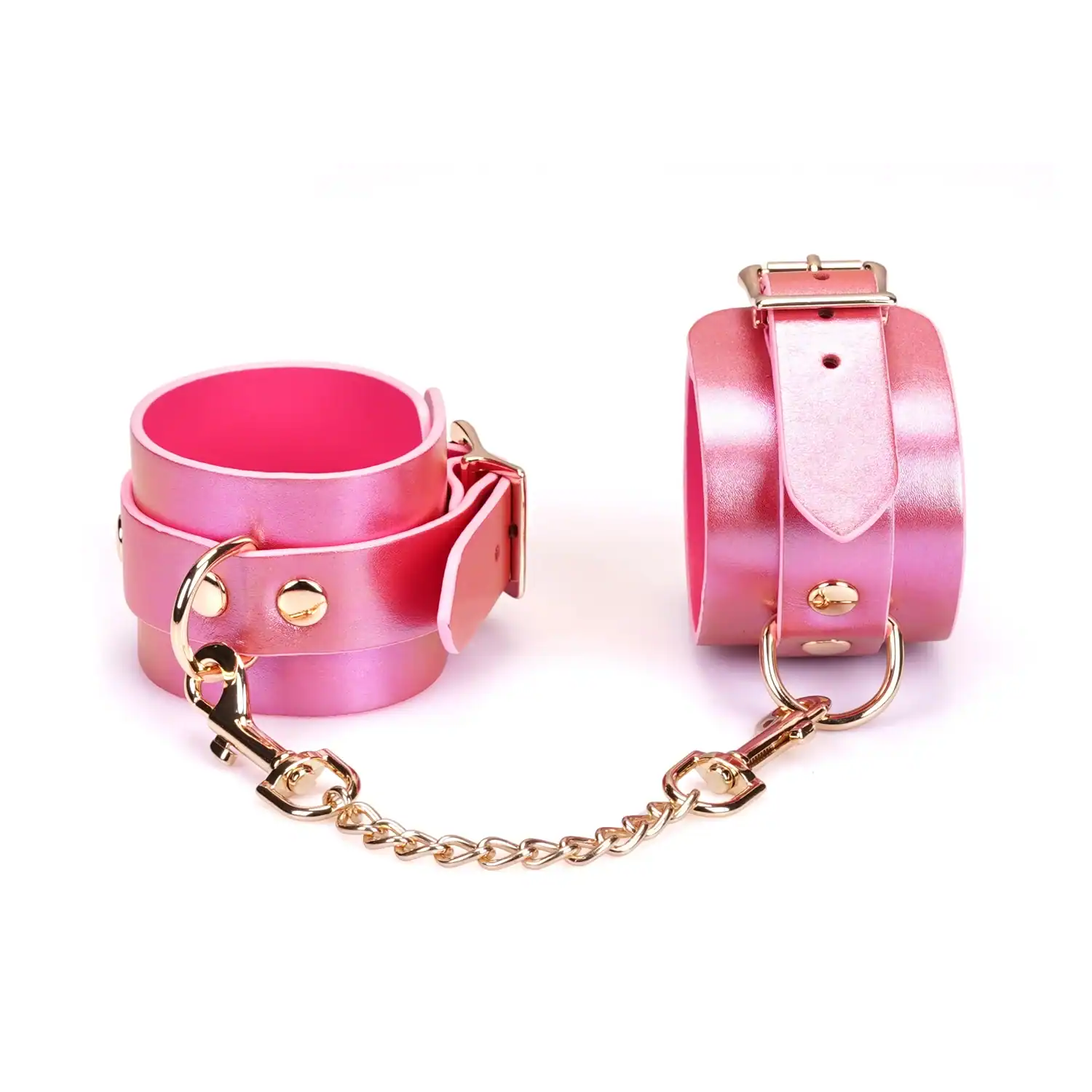 • Cuir rose à effet irisé et boucles dorées
