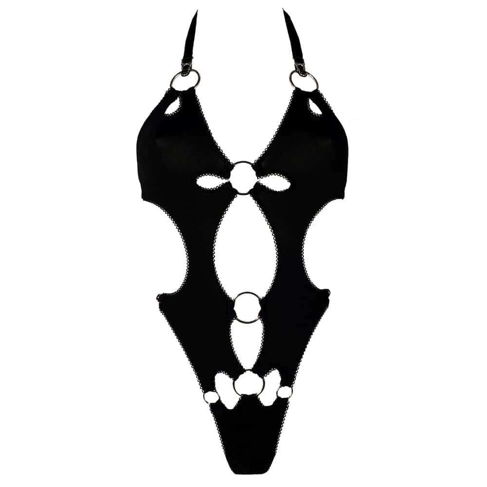 Der Erato-Body besticht durch seine präzisen Ausschnitte und die kühn platzierten Tropfenöffnungen. Seine weicher, dehnbarer Jersey schmiegt sich passgenau an die Kurven an. Die elastischen Noppenabschlüsse sorgen für einen zarten Touch, während die verstellbare und abnehmbare Träger bieten eine perfekte Passform. Die silberfarbenen Beschläge unterstreichen das Ganze auf subtile Weise.