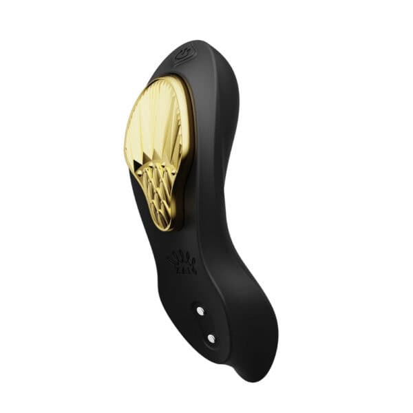 Eine elegante goldene Verzierung in Form eines Schildes pflegt Aya an Ort und Stelle, wenn sie unter dem Höschen getragen wird, für diskrete Spiele in der Öffentlichkeit oder intime Momente als Paar.