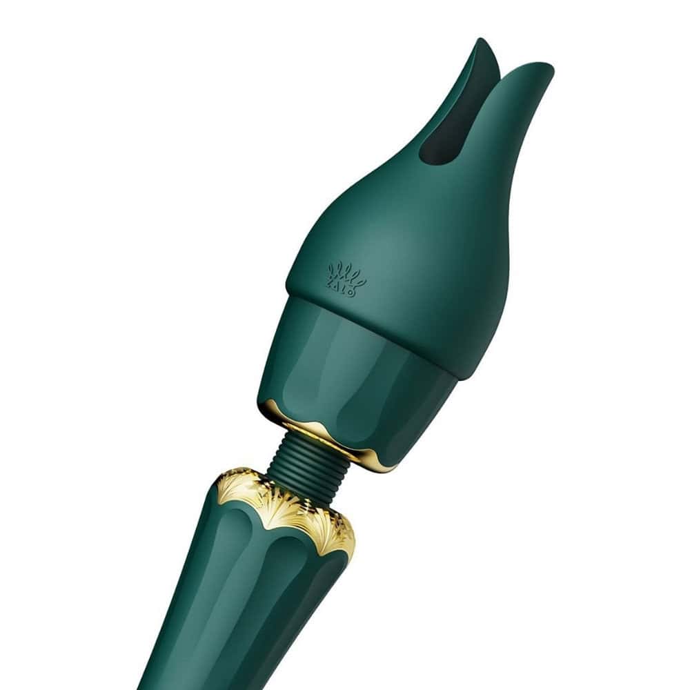 Das Massagegerät Kyro Wand ist vom Zepter der ägyptischen Pharaonen inspiriert, einem Symbol der Macht und des Königtums. Es vereint Ästhetik und Leistung und verfügt über die innovative, von ZALO entwickelte Direct Power 2.0-Technologie. Diese Technologie konzentriert starke Vibrationen auf den Kopf des Stabes und sorgt so für eine direkte und intensive Stimulation.