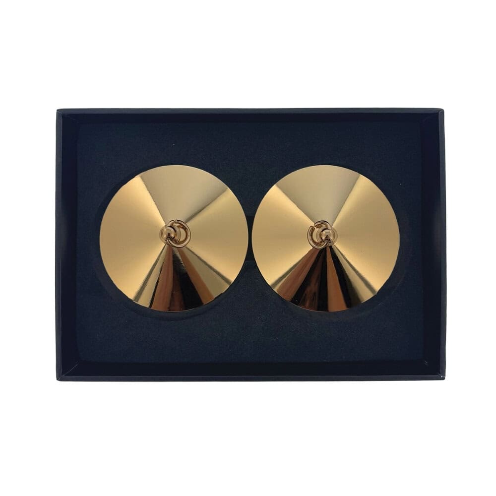 Эти золотые крышки для колец воплощают красоту контраста и силу деталей. Изготовленные из полированного золотого металла, они имеют центральное кольцо, которое ловит свет и притягивает взгляд. Частично ювелирные украшения, частично провокация, их носят как приглашение к любопытству.