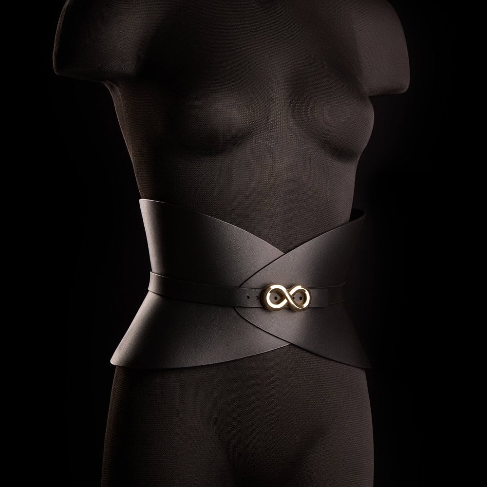 Его расклешенная основа подчеркивает силуэт и создает графический объем, оставаясь при этом удобной в носке. Настоящий пояс-жемчужина, его можно надеть поверх платья, костюма или боди, чтобы создать модный, напористый образ.